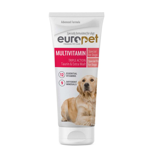 خمیر مولتی ویتامین یوروپت یک محصول کامل و مغذی برای حمایت از تغذیه سالم و تقویت سیستم ایمنی سگها است. این خمیر با ترکیبات ویژهای مانند تائورین، مالت اضافی و ویتامینهای ضروری طراحی شده که باعث بهبود سلامت عمومی و افزایش انرژی سگها میشود. ویژگیها: طعم خاص و جذاب: این محصول با طعم خاصی تهیه شده که سگها به راحتی آن را میپسندند و به لیسیدن آن تمایل دارند. اکشن سهگانه: تقویت سیستم ایمنی، افزایش انرژی و حمایت از سلامت پوست و مو. تائورین و مالت اضافی: تائورین به تقویت قلب و عملکرد عضلات کمک میکند، و عصاره مالت نیز به هضم بهتر غذا کمک میکند. ویتامینها و مواد معدنی: این محصول حاوی ویتامینهای A، B1، B2، B6، B12، C، D و E است که برای حفظ سلامت عمومی و تقویت استخوانها و دندانها ضروری هستند.