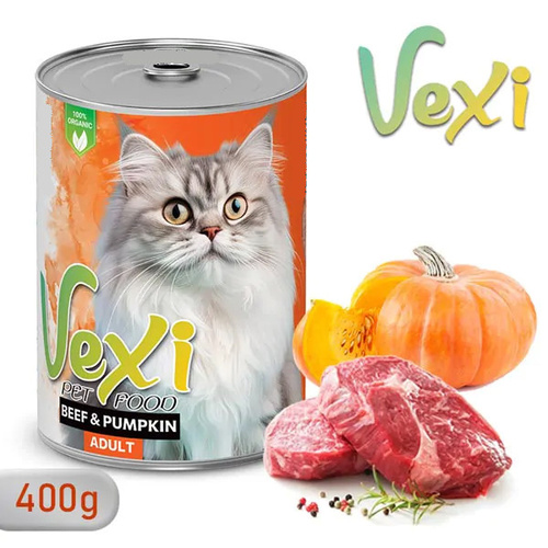 کنسرو غذای گربه وکسی مدل گوشت و کدو وزن 400 گرم