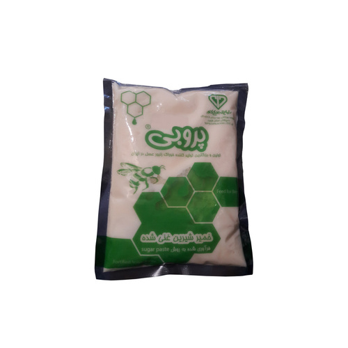 ترکیبات خمیر شیرین غنی شده مخصوص زنبور عسل شامل شکر میکرونیزه،اسیدهای آمینه،مولتی ویتامین،مواد معدنی،روغن گیاهی،اسید های آلی،عصاره های گیاهی،پری بیوتیک،گلوکز و فروکتوز میباشد. این محصول حاوی 20 اسیدامینه،13 ویتامین و 8 ماده معدنی ضروری بر اساس نیازهای زنبور عسل فرموله و تنظیم شده است و این محصول فاقد آلودگی سالمونلایی میباشد. این غذا آماده مصرف میباشد،قسمتی از سلفون را بریده و روی قاب ها داخل کندو قرار دهیدو جهت جلوگیری از خشک شدن لطفا محصول را به طور کامل از سلفون خارج نکنید.